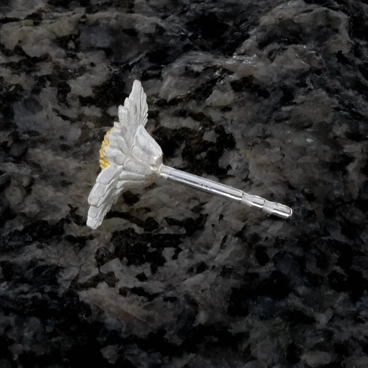 Gänseblümchen Ohrsteckerpaar (2 Blüten), weißgesiedetes 925/°°° Silber (schneeweiß), 900/°°° Gelbgold, Durchmesser ca. 11 mm, Blütenkelch etwas abgeflacht